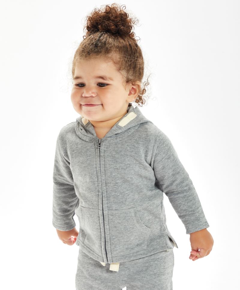 80% zertifizierte Bio-Baumwolle, 20% recyceltes Polyester (rPET), Bio-Baumwolle oder in Umstellung auf Bio (IC 2), French Terry (innen nicht angeraut), heather grey melange: 71% zertifizierte Bio-Baumwolle, 21% recyceltes Polyester (rPET), 8% Viskose, Bio-Baumwolle oder in Umstellung auf Bio (IC 2)
