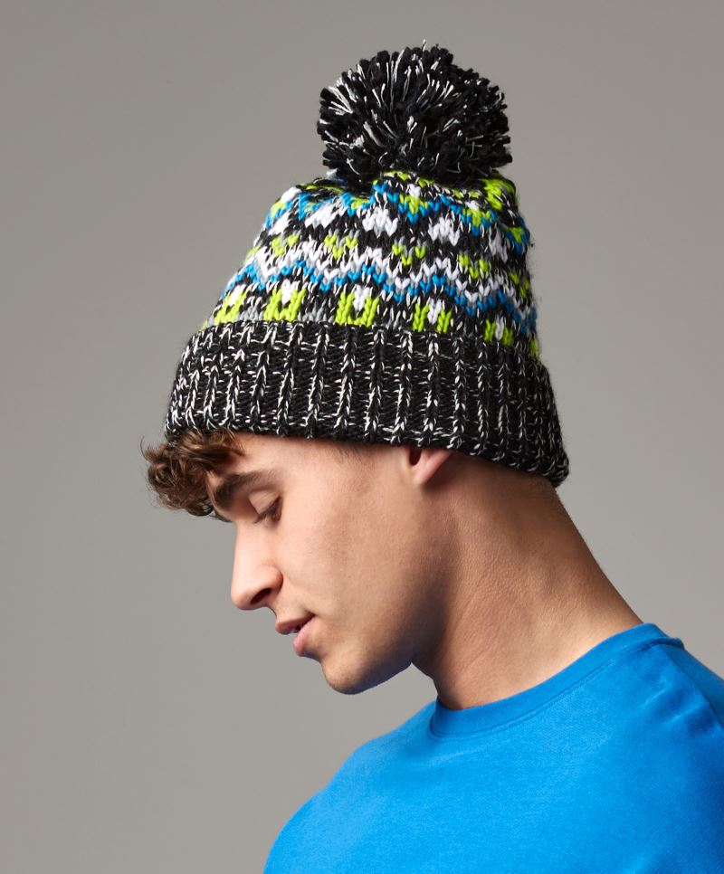 Flexibler Umschlag, Thermoband aus künstlichem Lammfell innen, 2-farbig, mit Pompon, robuster Strick im Mehrgarn-Zopfmuster, TearAway Label, Handwäsche, nicht bügeln