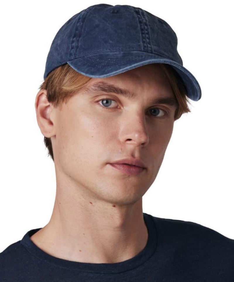 Leicht gebogener Schirm, weicher, nicht strukturierter Kopfbereich, hohes Kappenprofil, Stoffband mit Messingschnalle als Verschluss, TearAway Label, nur mit einem Schwamm reinigen, nicht bügeln, nicht trocknergeeignet, nicht chemisch reinigen