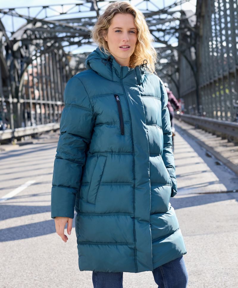 Wasser- und schmutzabweisend durch BIONIC-FINISH®ECO, Stehkragen, verstellbare abnehmbare Kapuze, elastische innenliegende Ärmelbündchen, durchgehender 2-Wege Reißverschluss, 2 große Innentaschen, 2 Seitentaschen mit Reißverschluss, 3-fache Steppnähte, 30° waschbar, Schonwäsche, trocknergeeignet bei niedriger Temperatur