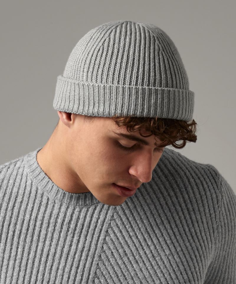 Beanie im Fisherman Style, kurz geschnitten, Umschlag, doppelt gestrickt, Breite: 19cm, Gesamtlänge inklusive Umschlag: 21,5cm, 30° waschbar, Schonwäsche, nicht trocknergeeignet, nicht chemisch reinigen