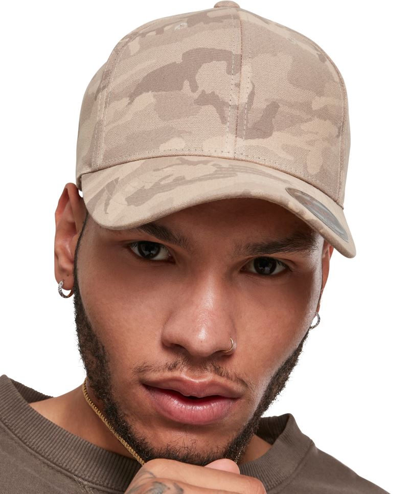 Gebogener Schirm, Sticker auf dem Schild, 8 Ziernähte am Schild, gute Passform durch Elasthaneinsatz und Flexfit®-Band, Frontpanel verstärkt, mittleres Kappenprofil, Flexfit® Technologie ohne Verschluss, All-Over Print, nicht waschen, nicht bügeln, nicht trocknergeeignet, nicht chemisch reinigen