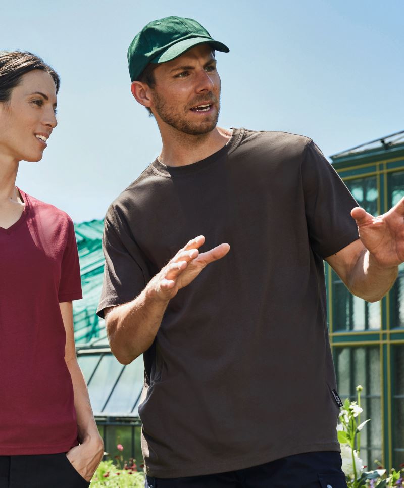Leicht taillierter Schnitt, V-Ausschnitt, Nackenband, Bündchen am Hals mit Elasthan, strapazierfähig, pflegeleicht, 60° waschbar, trocknergeeignet bei niedriger Temperatur