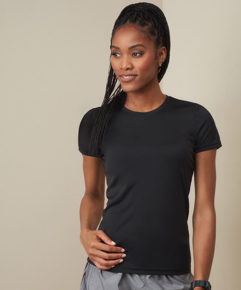 Verbesserter Rundhalsausschnitt mit Nackenband, Raglanärmel mit verdeckten Nähten, schnelltrocknend, 40° waschbar, nicht trocknergeeignet, nicht chemisch reinigen