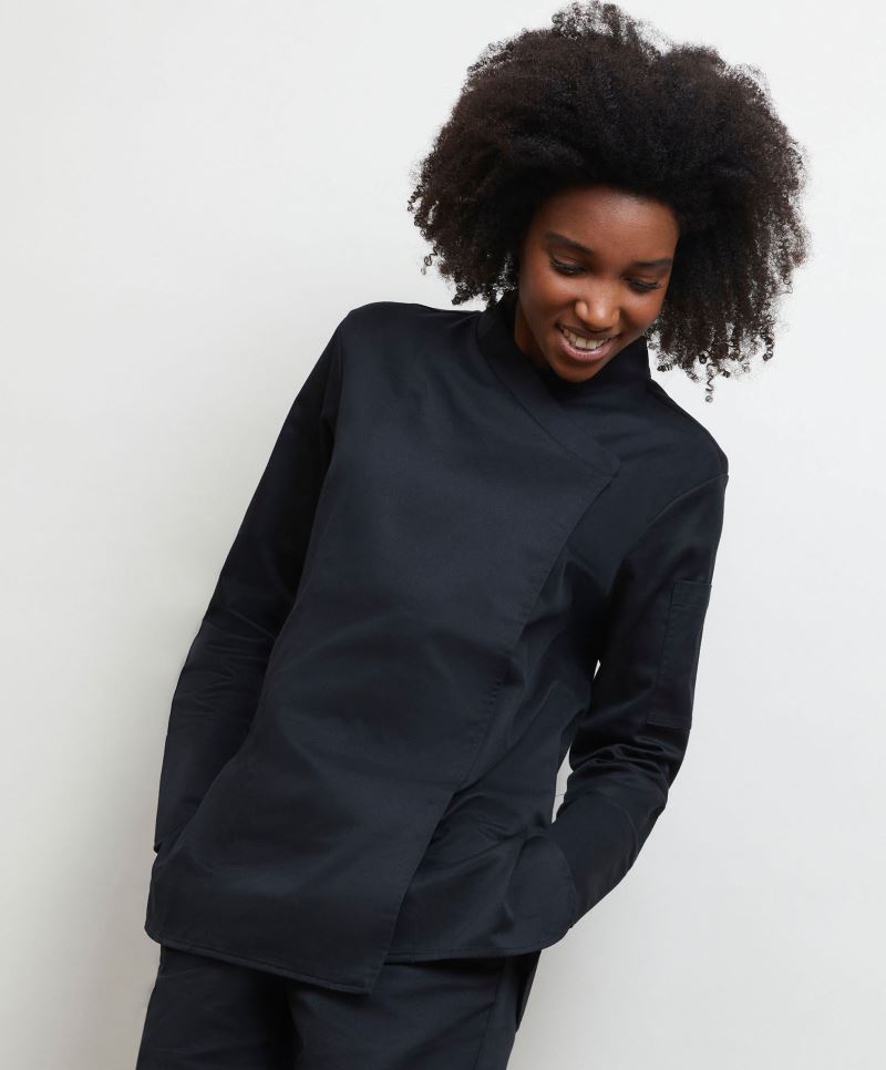 Durchgehende Knopfleiste mit Druckknöpfen, atmungsaktive Einsätze am Armausschnitt, Ärmeltasche, Seitenschlitze, TearAway Label, neutrales Größenlabel, 60° waschbar