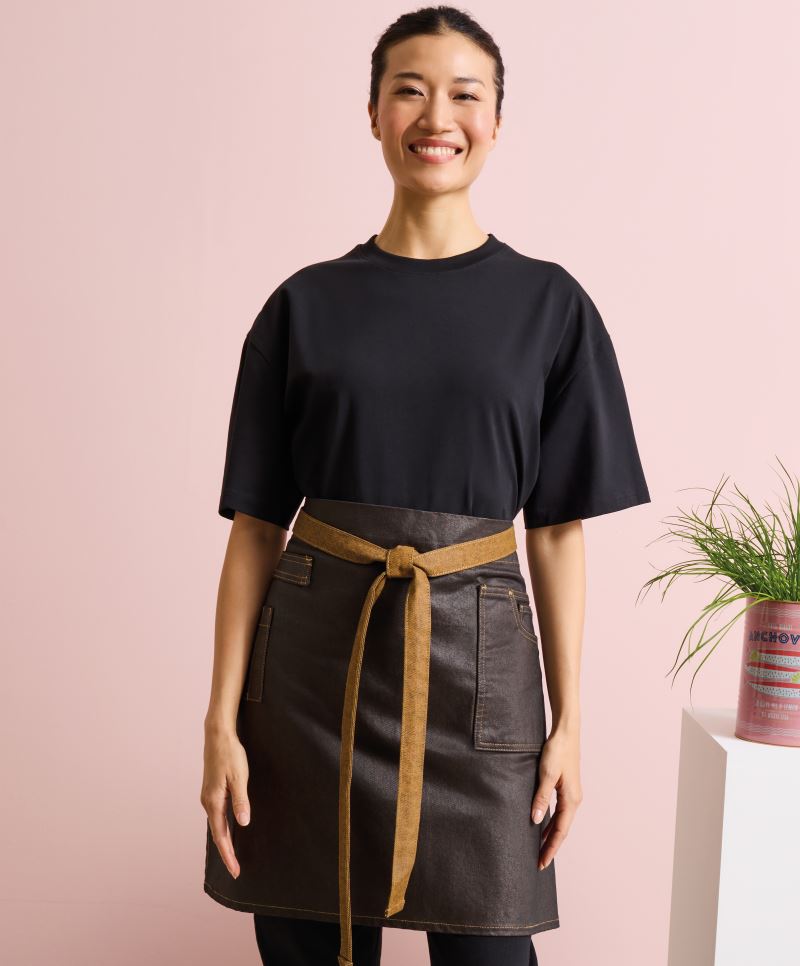 Wasserabweisende Eigenschaften, verstellbares Nackenband mit Metallschnalle, aufgesetzte Tasche und Tuchhalter, Taschenmaß: 13x13cm, Nähte in Kontrastfarbe, gewachste Optik, 100cm lange Bindebänder aus Kunstleder, Länge: 86cm, Breite: 72cm, Easy Care, 40° waschbar, nicht trocknergeeignet