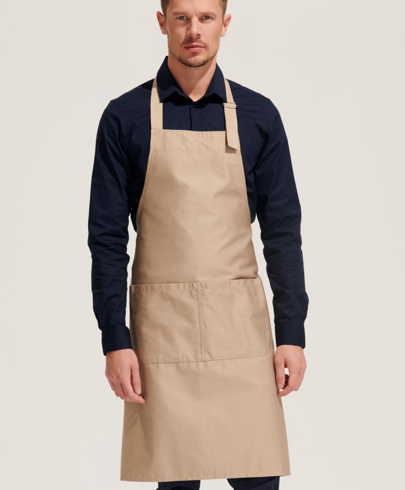 Verstellbares Nackenband mit Plastikschließe, Bänder aus Schürzenstoff, OEKO-TEX® Standard 100, Länge: 86cm, Breite: 72cm, Industriewäsche 85° waschbar, 60° waschbar, trocknergeeignet bei niedriger Temperatur