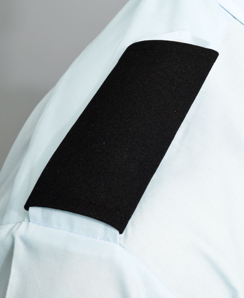 Taillierter Schnitt, Kragen verstärkt, Manschetten mit 1 Knopf, 2 Brusttaschen mit Patte und 1 Stifttasche, passende Schulterklappen Art. 39.0715, Easy Care, bügelleicht, 40° waschbar, nicht trocknergeeignet