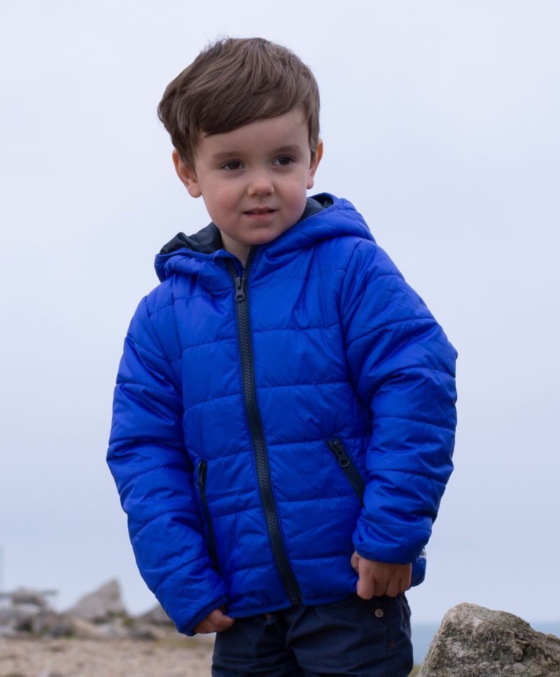 Integrierte Kapuze mit Einfassung, 2 Seitentaschen mit Reißverschluss, Reißverschlüsse und Einfassung in Kontrastfarbe, Innenfutter in Kontrastfarbe, Veredelungszugang, reflektierendes Detail (ohne Schutzfunktion) an der Hüfte für mehr Sicherheit