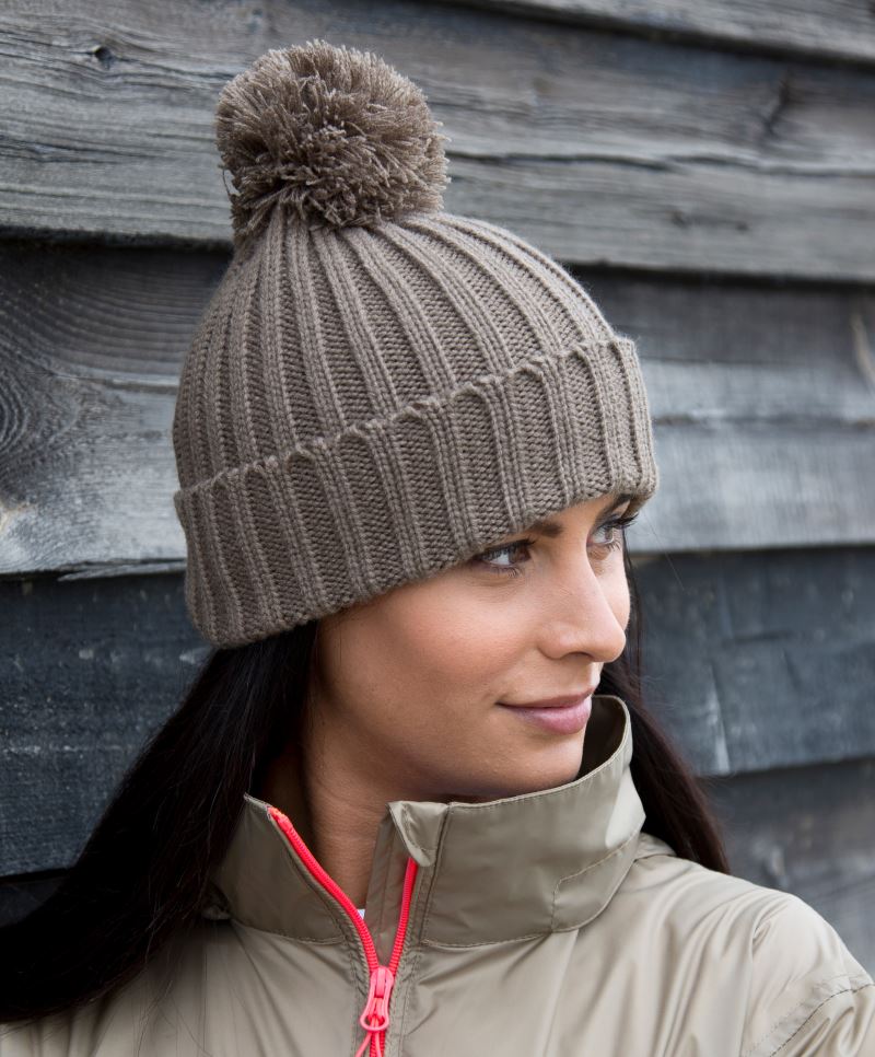 Breiter Umschlag, mit Pompon, schwerer Rippstrick, Einheitsgröße: 20x22cm, 40° waschbar, Schonwäsche, in feuchtem Zustand in Form ziehen, nicht bügeln, nicht trocknergeeignet, nicht chemisch reinigen