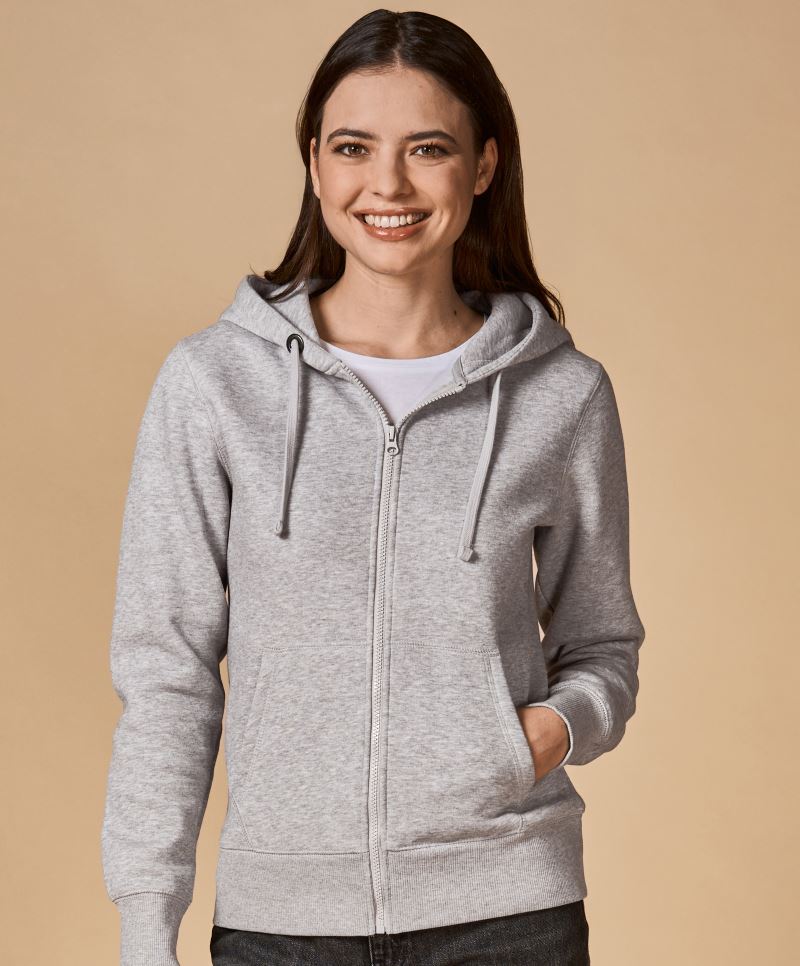 Leicht taillierter Schnitt, gerader Schnitt mit schlankerer Schulterpartie und Ärmeln, 2-lagige Kapuze mit breitem Zugband und Öse, Fischgrät-Nackenband, legere Bündchen, verdeckter YKK Reißverschluss in Antik-Messing-Optik, Decknähte an Armausschnitt und Bündchen, nach vorne versetzte Schulternähte, 3-fädige Sweat-Qualität, Oberfläche aus 100% Baumwolle, feine Oberfläche, Kopfhörerführung, 40° waschbar, trocknergeeignet bei niedriger Temperatur
