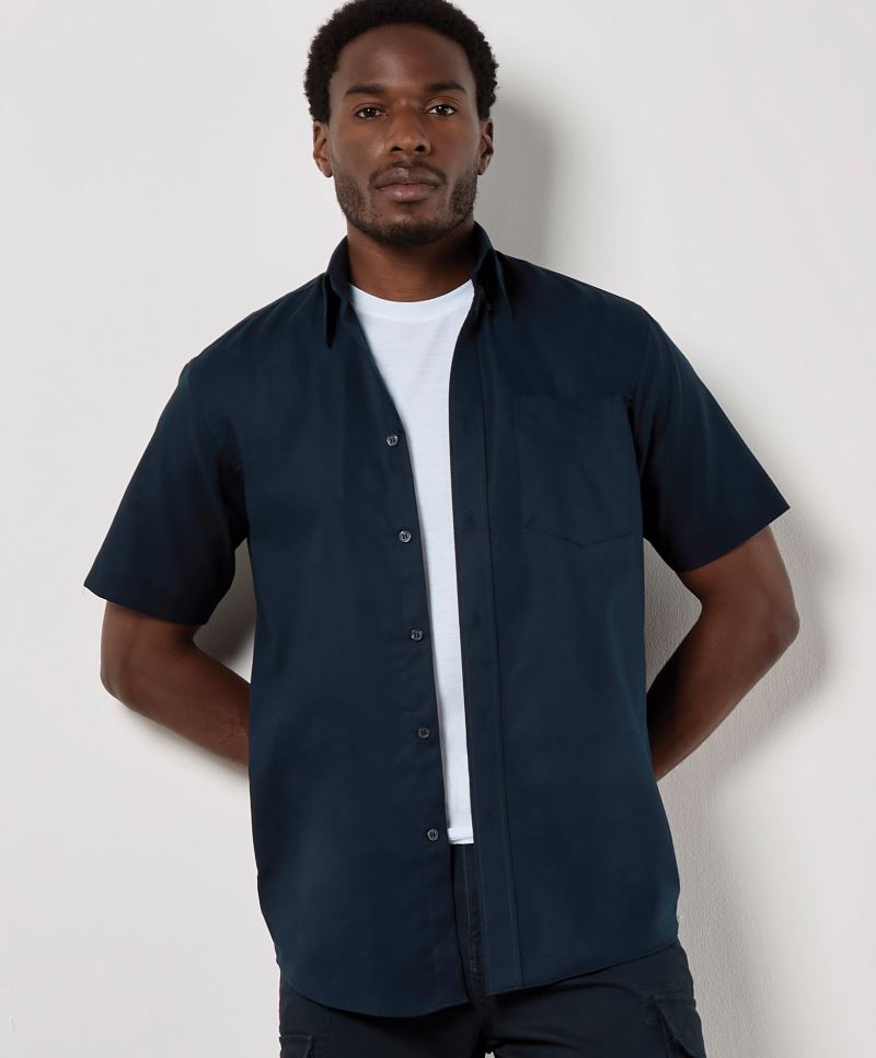 Klassischer Schnitt, Button-Down-Kragen, abgerundeter Bund, Ersatzknöpfe, V-förmig zulaufende Tasche auf linker Brust, rückwärtige Schulterpasse mit 2 an den Seiten eingelegten Falten, Easy Care, 40° waschbar, trocknergeeignet