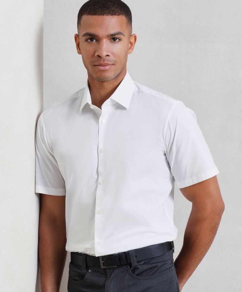 Taillierter Schnitt, eleganter halb ausgestellter Kragen mit einem Knopf mit Perlmuttschimmer, abgerundeter Saum, Ersatzknöpfe, ohne Brusttasche, Easy Care, 40° waschbar, trocknergeeignet