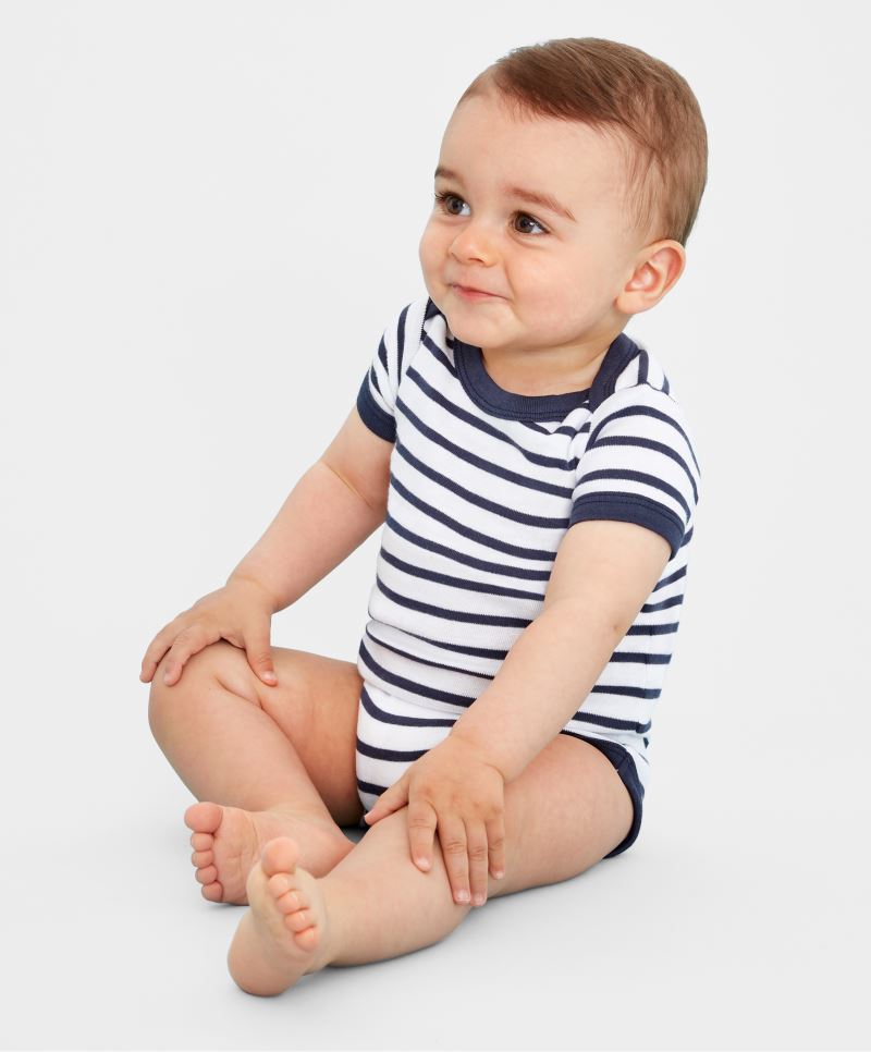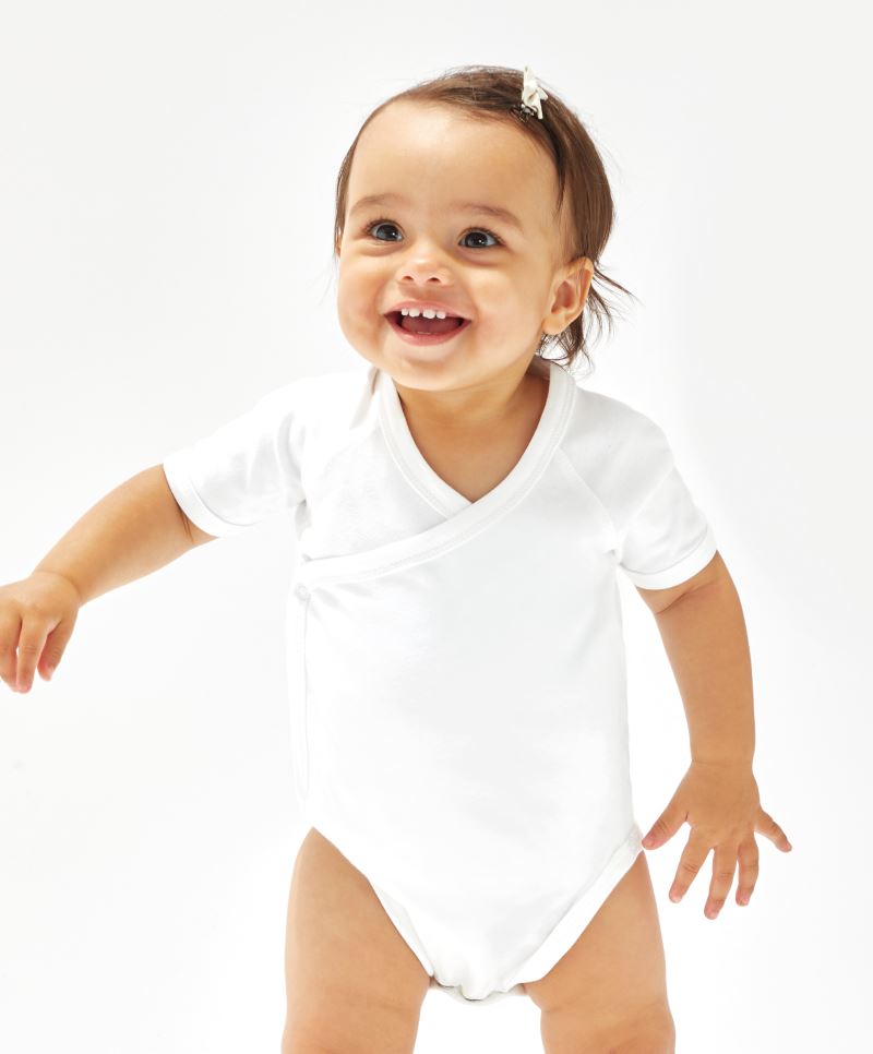 Überlappender angenehmer Halsausschnitt, Rippstrickbündchen an Hals, Ärmeln und Bein, Druckknöpfe im Schritt, dehnbares Material, 1x1 Rippstrick, 40° waschbar, nicht trocknergeeignet
