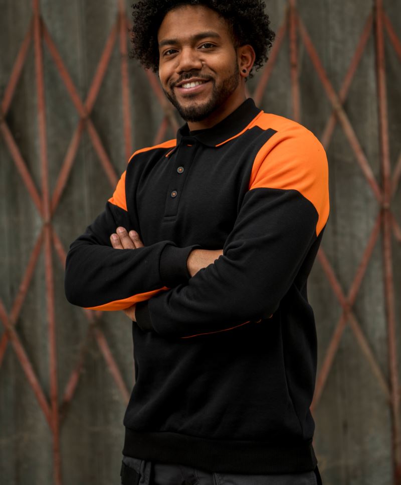 Gestrickter Polokragen, versteckte Druckknopfleiste, 1x1 Rippstrickbündchen mit Elasthan an den Ärmeln, Seitenschlitze, TearAway Label, neutrales Größenlabel, 60° waschbar, nicht bügeln, trocknergeeignet bei niedriger Temperatur, nicht chemisch reinigen