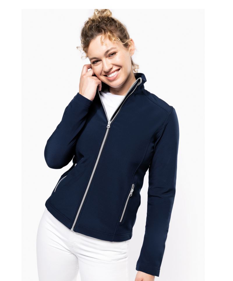 Taillierter Schnitt, 2-lagiges Softshellmaterial, Stehkragen, verstellbarer Bund mit elastischer Kordel, Qualitäts-Reißverschluss, 2 Seitentaschen mit Reißverschluss, TearAway Label, 40° waschbar, nicht trocknergeeignet