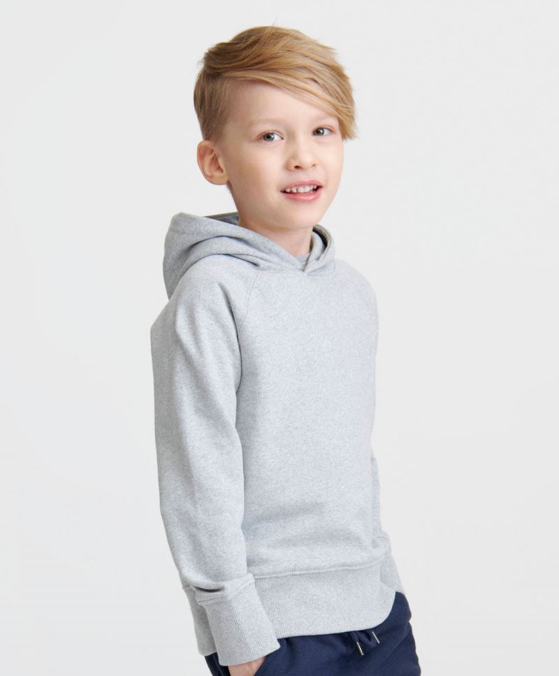 Gerader Schnitt, Kapuze mit Futter aus Single Jersey, Halbmond im Nacken, Nackenband, Raglanärmel, 2x2 Rippstrick an Kragen, Ärmel- und Saumabschlüssen, Kängurutasche, 3-fädige Sweat-Qualität, innen angeraut, TearAway Label, neutrales Größenlabel, 40° waschbar, nicht trocknergeeignet