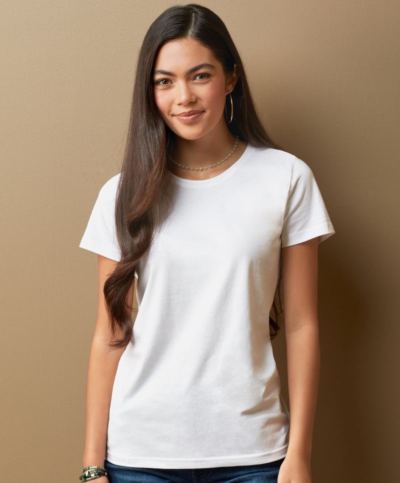 Taillierter Schnitt, Rundhalsausschnitt, Melange Farben aus 100% Baumwolle, Tear Away Label in Seitennaht, neutrales Größenlabel, 40° waschbar, Schonwäsche, nicht trocknergeeignet, nicht chemisch reinigen