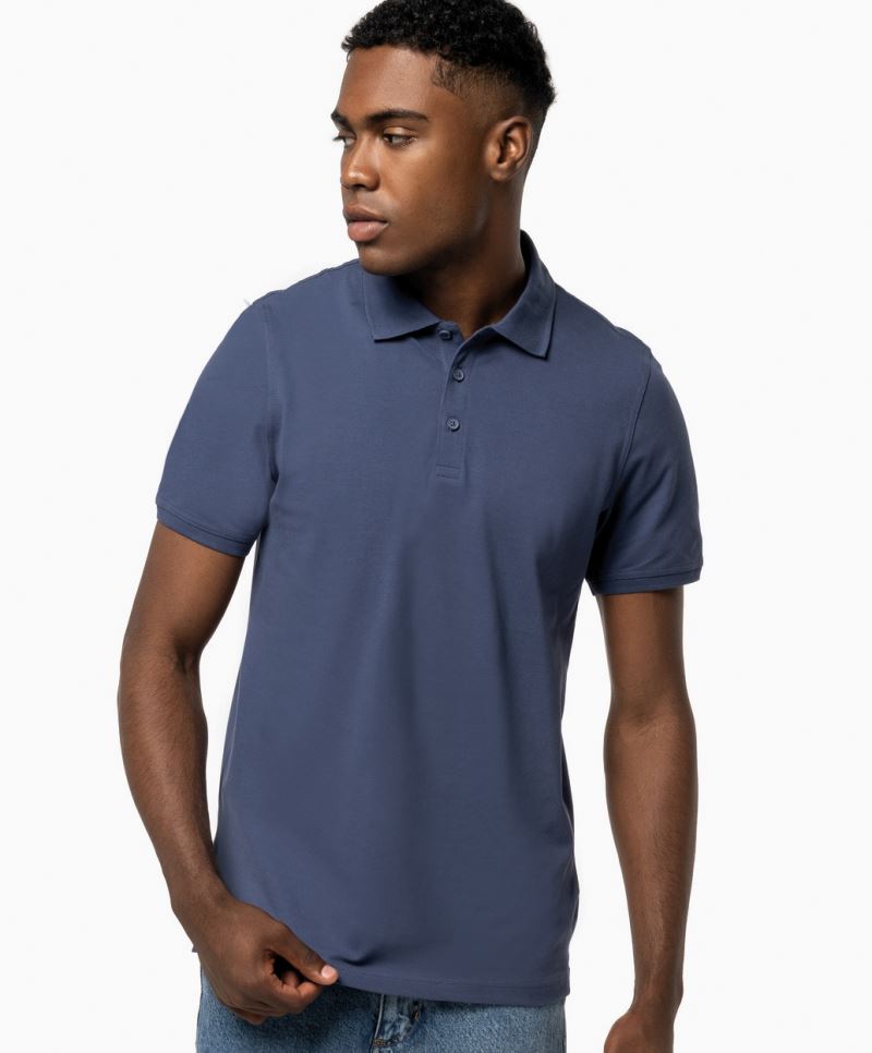 95% doppelt einlaufvorbehandelte gekämmte ringgesponnene zertifizierte Bio-Baumwolle, 5% Elasthan, enzymgewaschen, doppelt verdichtetes Mini Piqué