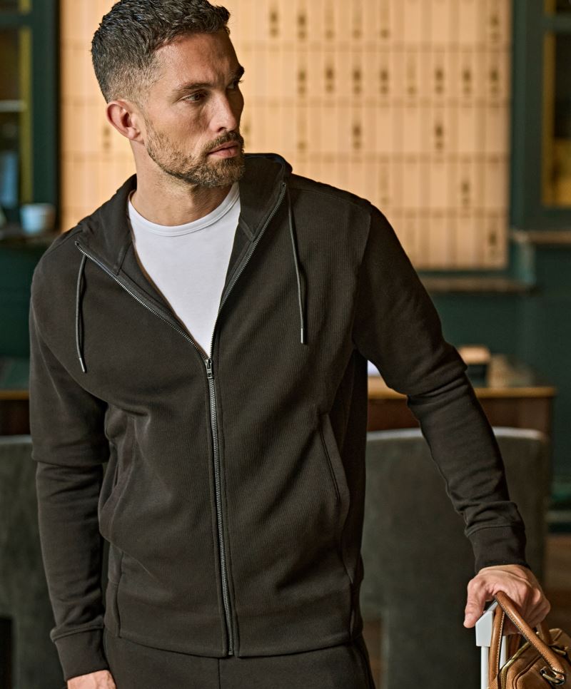 Flat Back Rib Stoff, kleiner V-Einsatz am Kragen, Rundhalsausschnitt mit Elasthan, Fischgrät-Nackenband, Rippstrickbündchen an Ärmel- und Bundabschluss mit Elasthan, hochwertiges geripptes Interlock Material, 40° waschbar, nicht trocknergeeignet