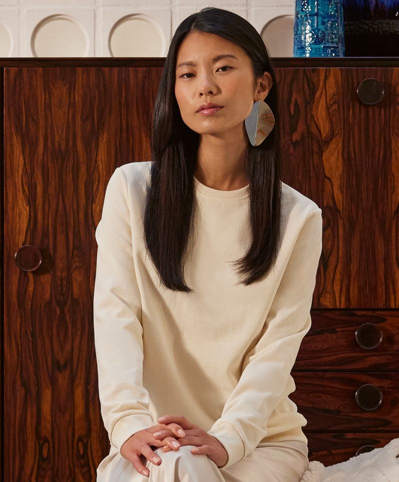 80% cotone pretrattato con tecnica ringspun, 20% poliestere riciclato, heather grey: 92% cotone, 8% viscosa, altri colori heather: 60% cotone, 40% poliestere, French Terry (non arruvidito all'interno)