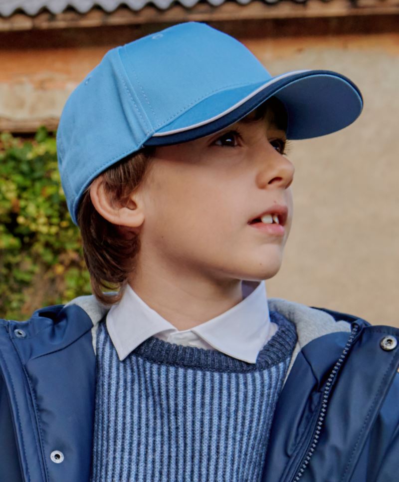 Visiera preformata, segmento frontale strutturato, fori per l'aria ricamati, Snapback, bottone sicuro per i bambini, etichetta TearAway, volume: 55-58 cm, no Stiro, non adatta all'asciugatrice, non lavare con trattamento chimico