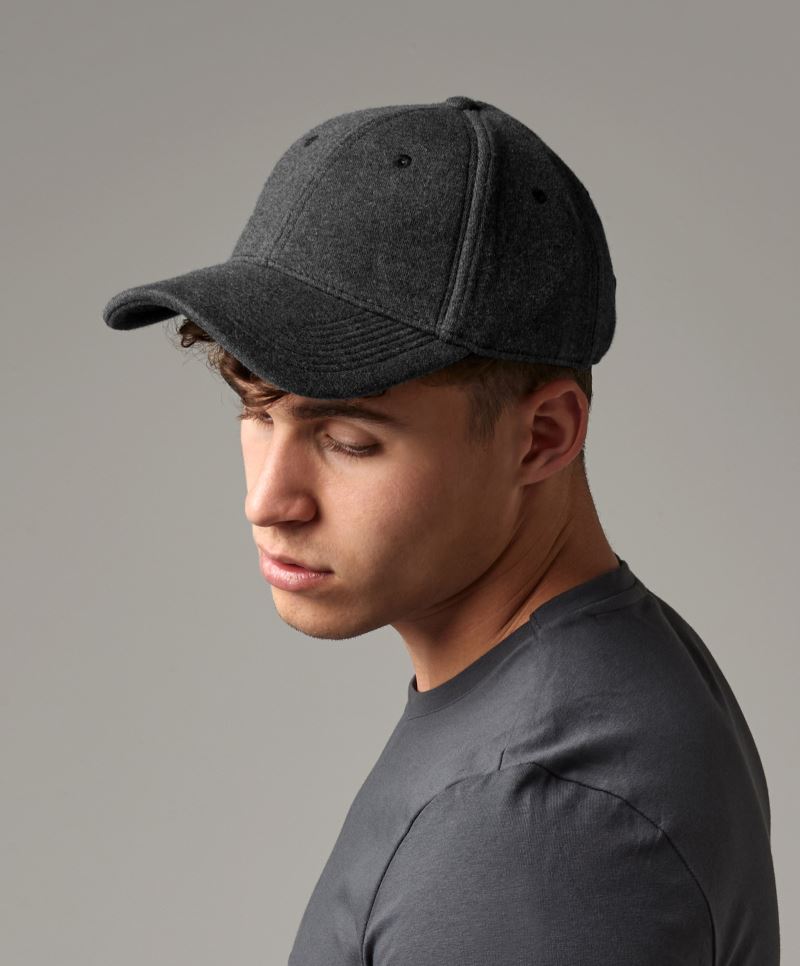 Pre-formed peak, cotton sweatband, structured front segment, fabric fastener with metal buckle, Snap fastener, TearAway label, do not wash, do not iron, not suitable for tumble drying, do not dry clean