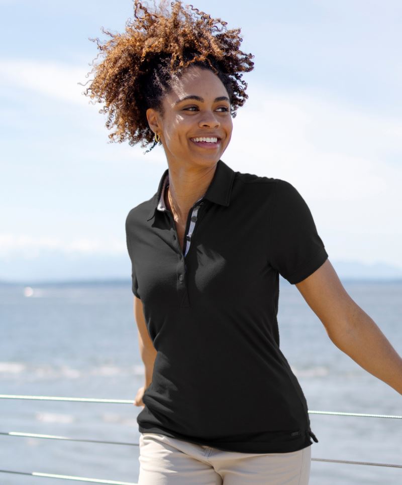 Abbottonatura con 3 bottoni in metallo, abbottonatura interna in colore a contrasto, fascia del colletto in colore a contrasto, spacchi laterali, tocco morbido, a regolazione d'umidità, protezione UV 35+, lavabile a 40°, non adatta all'asciugatrice, non lavare con trattamento chimico