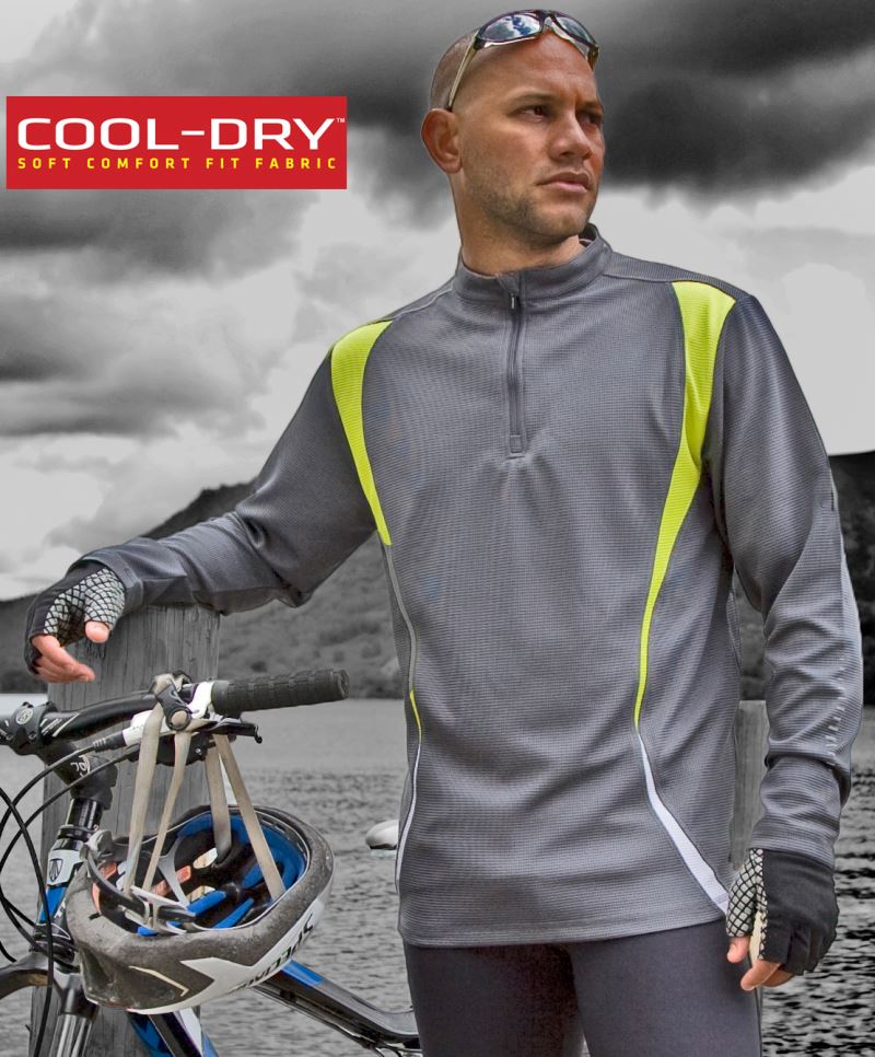 Colletto alla coreana, maniche Raglan con slittamento pollice, chiusura lampo YKK con pistagna riflettente (senza funzione protettiva) e protezione per il mento, cuciture piatte tono su tono, spazzolato all'interno, parte esterna liscia, transfer riflettente (senza funzione protettiva) sulla schiena, lavabile a 30°, biancheria delicata, no Stiro, non adatta all'asciugatrice