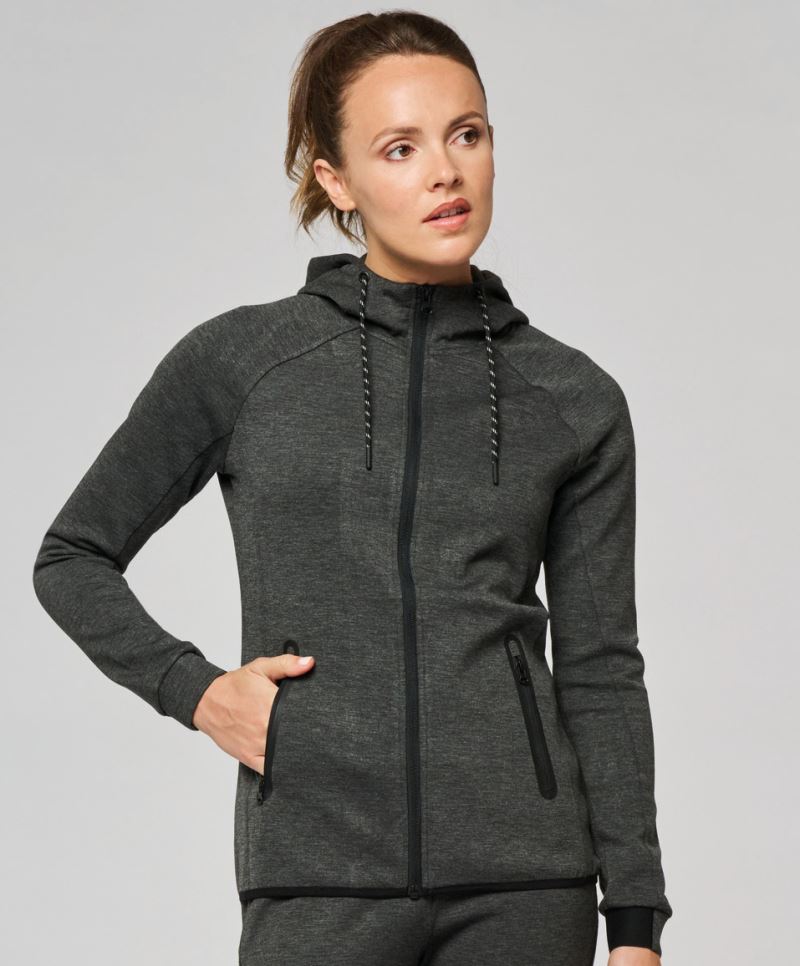 79% poliestere, 15% viscosa, 6% elastan, cappuccio: 65% poliestere, Imbottitura a 35% in jersey di cotone