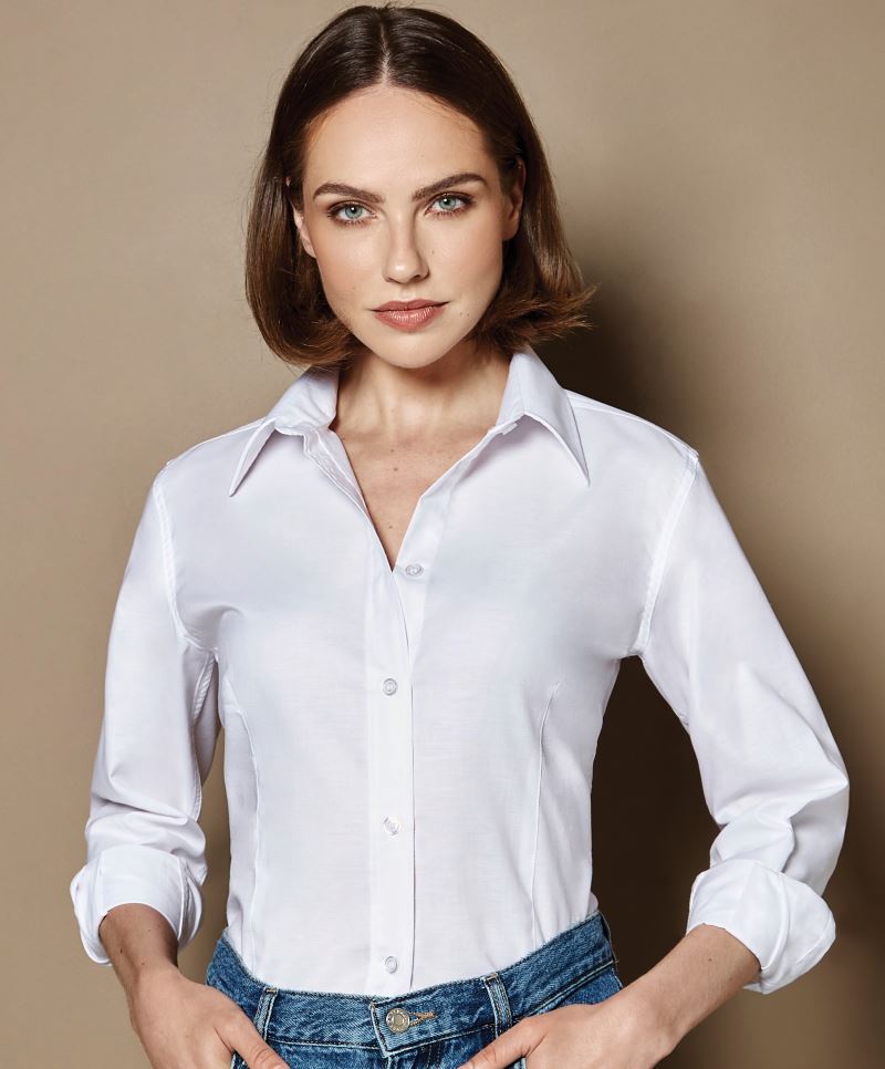 Taglio stretto in vita, colletto rinforzato, polsini regolabili con 2 bottoni, orlo arrotondato, 1 bottone di ricambio, bottoni tono su tono ( tranne su light blue), doppie cuciture su maniche e fianchi, pincia sul davanti e sul retro, sprone della schiena, lavabile a 50°, facile da stirare, non adatta all'asciugatrice, taglie 26-28 Art. n°. 43.361X