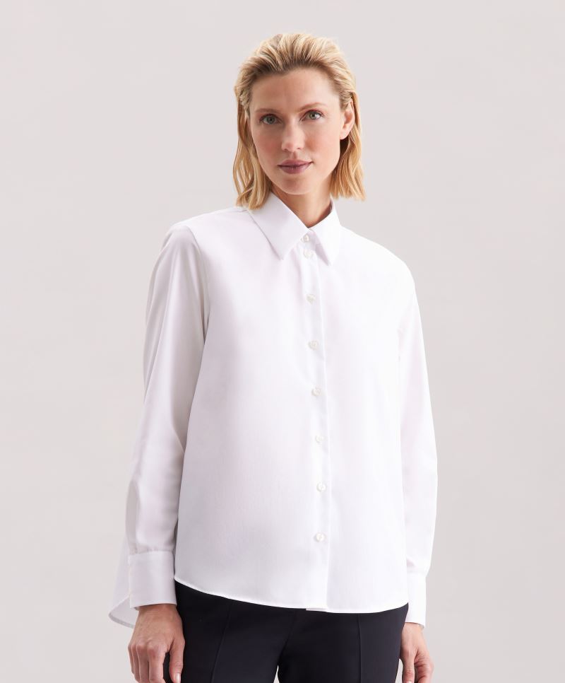 Abbottonatura nascosta, polsini regolabili, etichetta Tear Away, etichetta con le misure neutra, lavabile a 40°, lavaggio a secco, adatta all'asciugatrice, pulizia chimica con un solvente qualsiasi ad eccezione del tricloretilene