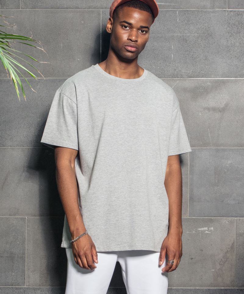 Taglio oversize, scollatura a maglia a coste con elastan, bordino al collo, spalle overcut, EU Ecolabel, SA 8000, etichetta con le misure neutra, lavabile a 60°, 40° lavaggio consigliato, adatta all'asciugatrice a temperatura bassa