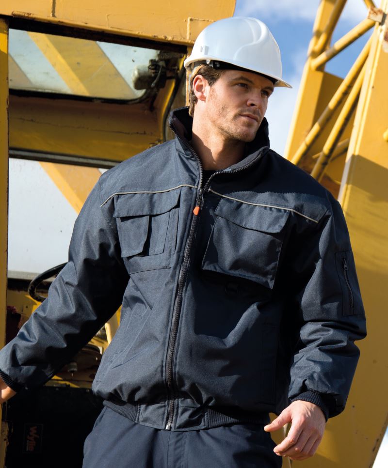 Tessuto Hydrafort lucido, impermeabile (colonna d'acqua di 5.000 mm), colletto alla coreana, polsini, maniche e orlo a coste, 2 tasche laterali con bottone a pressione, tasca sulla manica con cerniera lampo, tasca di sicurezza integrata, imbottitura interna in colore a contrasto, accesso di finitura nell'imbottitura, anello a D