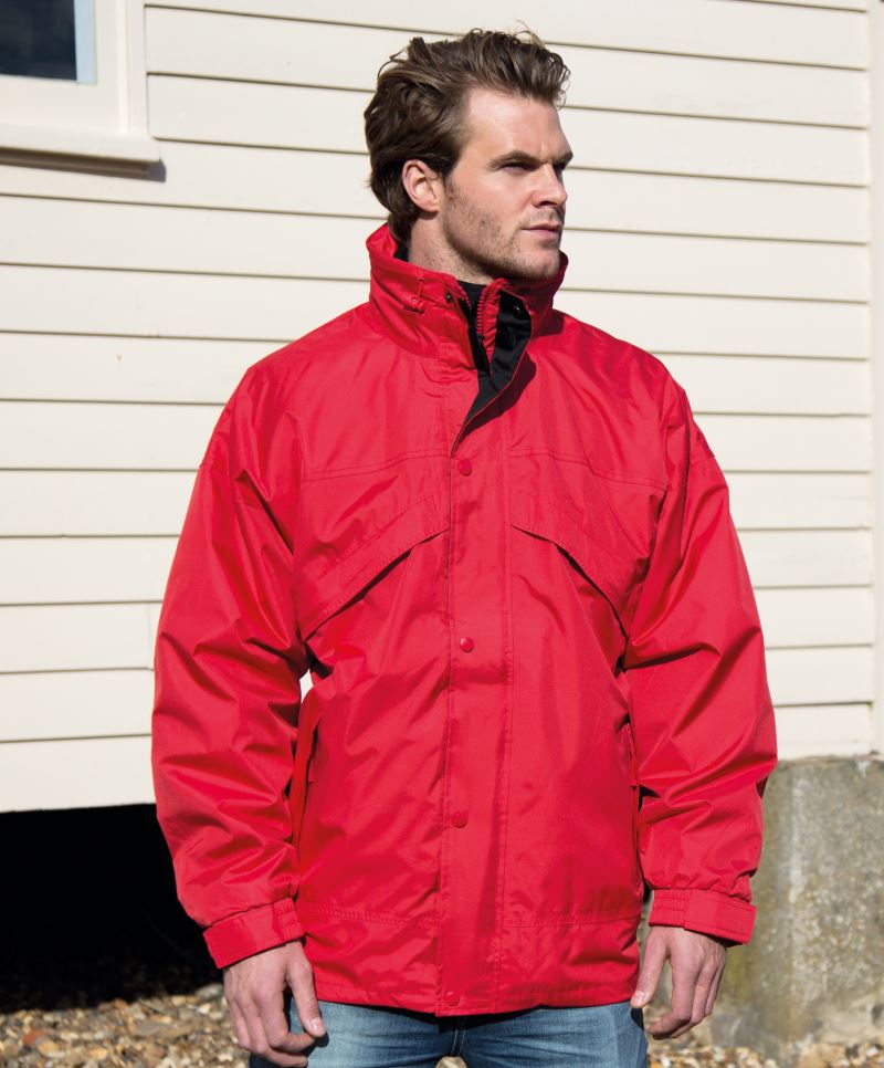Giacca esterna: impermeabile (colonna d'acqua di 3.000 mm), cappuccio rimovibile con cordoncino, polsini regolabili con chiusura a strappo, cerniera bidirezionale continua, tasca pettorale con cerniera, 2 tasche laterali, diverse tasche interne, cuciture sigillate, ovattatura in poliestere, accesso di finitura sulla schiena, antivento, elementi riflettenti (senza funzione protettiva), etichetta con le misure neutra, lavabile a 40°, biancheria delicata, no Stiro, non adatta all'asciugatrice, giacca interna: materiale softshell a 2 strati, polsini elastici legati, 2 tasche laterali con cerniera, materiale softshell adatto alla stampa