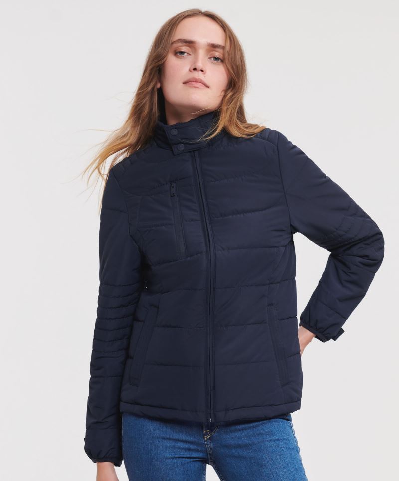 Taglio stretto in vita, tessuto DWR idrorepellente con Aquapel della tecnologia Nanotex®, colletto alla coreana con 2 bottoni a pressione e pannello antivento, tasche su maniche con bottone a pressione, cerniera lampo al rovescio, cerniere lampo al rovescio sulle maniche, tasche pettorali e laterali con cerniere lampo al rovescio, tasca interna con cerniera lampo, accesso di finitura sul petto sinistro, privo di fluoro e PFC, lavabile a 30°, no Stiro, adatta all'asciugatrice a temperatura bassa, non utilizzare ammorbidente, non lavare con trattamento chimico