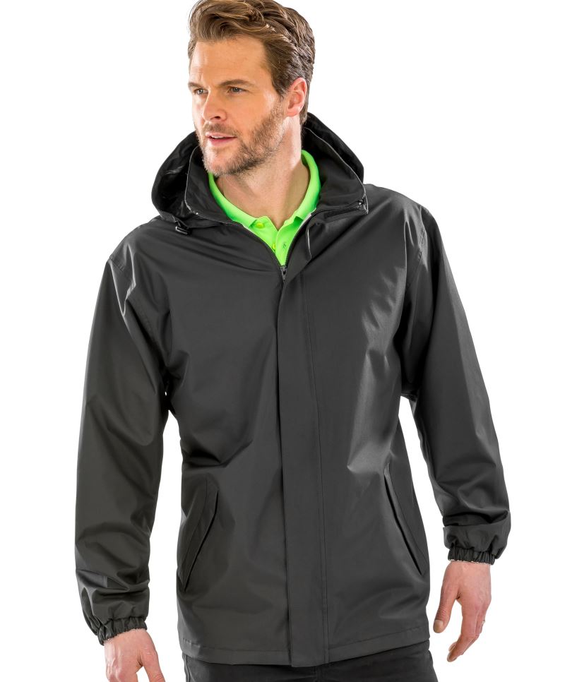 Impermeabile (colonna d'acqua di 2.000 mm), traspirante (2.000 g/m² in 24h), colletto interno con imbottitura morbida, cappuccio integrato nel colletto, maniche Raglan con gomiti pre-formati, tasca imbottite con cerniera, cuciture saldate, accesso di finitura sull'orlo, rivestimento PU, lavabile a 30°, biancheria delicata, adatta all'asciugatrice a temperatura bassa, non utilizzare ammorbidente