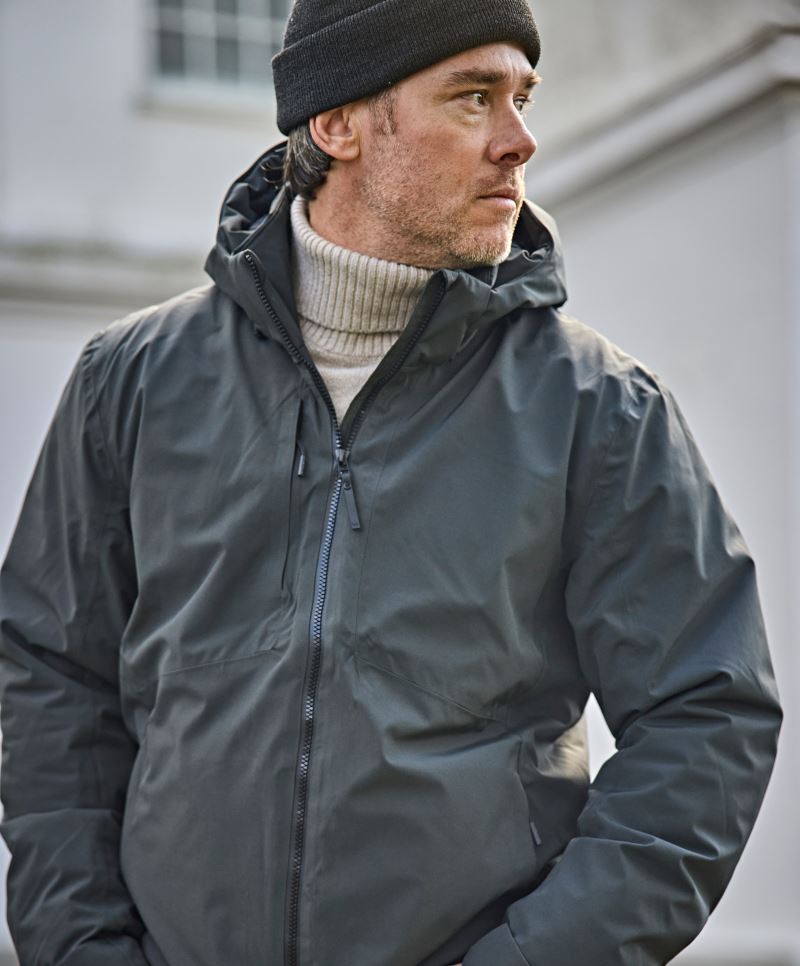 È in corso il passaggio al poliestere riciclato., impermeabile (colonna d'acqua di 8.000 mm), cappuccio estraibile con cordoncino regolabile, bordini delle maniche regolabili con chiusura a strappo, vita regolabile con cordino elastico e tappi, bordini interni delle maniche elastici, cerniere lampo SBS, tasca pettorale con cerniera lampo, tasca interna con cerniera lampo, 2 tasca laterali con cerniere lampo nascoste e imbottitura riscaldante, cuciture sigillate, accesso di finitura sulla schiena, cotone stretch a 4 direzioni, BIONIC-FINISH®
