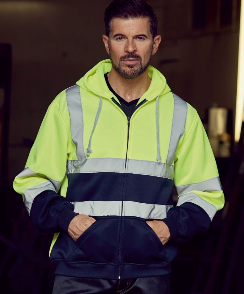 Spalle overcut, bordini in maglia a coste su scollatura, maniche e orlo, doppie cuciture, spazzolato all'interno, colori Hi-Vis certificati secondo EN ISO 20471 classe 3, proprietà riflettenti garantite per 25 lavaggi, secondo la normativa EN, altri colori permettono una visibilità superiore, 2 strisce riflettenti sulle maniche, 1 strisce riflettenti sopra ogni spalla, strisce riflettenti larghe due 5 cm attorno al corpo, lavabile a 40°